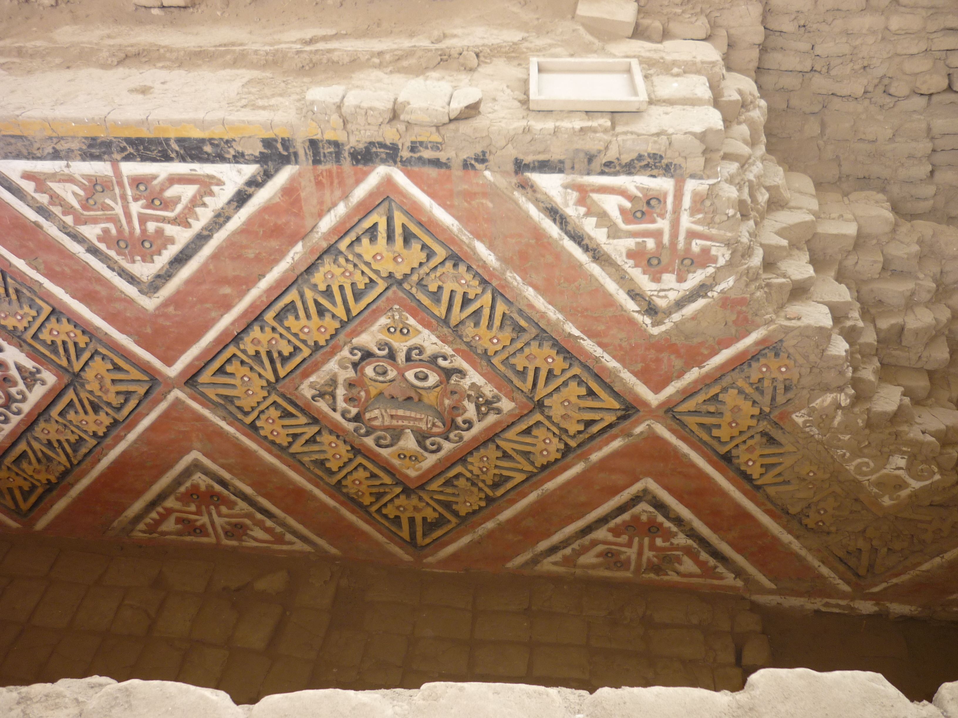 Besides many churches and impressive buildings, there are many sites of archaeological significance in and around the city where pre-Inca civilisation like the Moche and the Chimú have left their mark. I visited the Huana de la Luna, the moon temple and accompanying museum. The temple dates from the Moche dynasty and was built between the first century and 600 CE and discovered in 1998. The museum is only a few years old. It’s not very big, but very well set-up and it has some impressive items on display. After visiting the museum first we- the tour group I had joined for the day with some lively and interesting individuals- were driven to the site of the moon temple only a few hundred metres away. The complex is located by a mountain that was considered a god and the Moche made many human sacrifices to their mountain god with the attempt to control freak weather events caused by el niño. The temple consists of 8 layers, each layer being filled up with mud bricks after every el niño event and round of sacrifices.